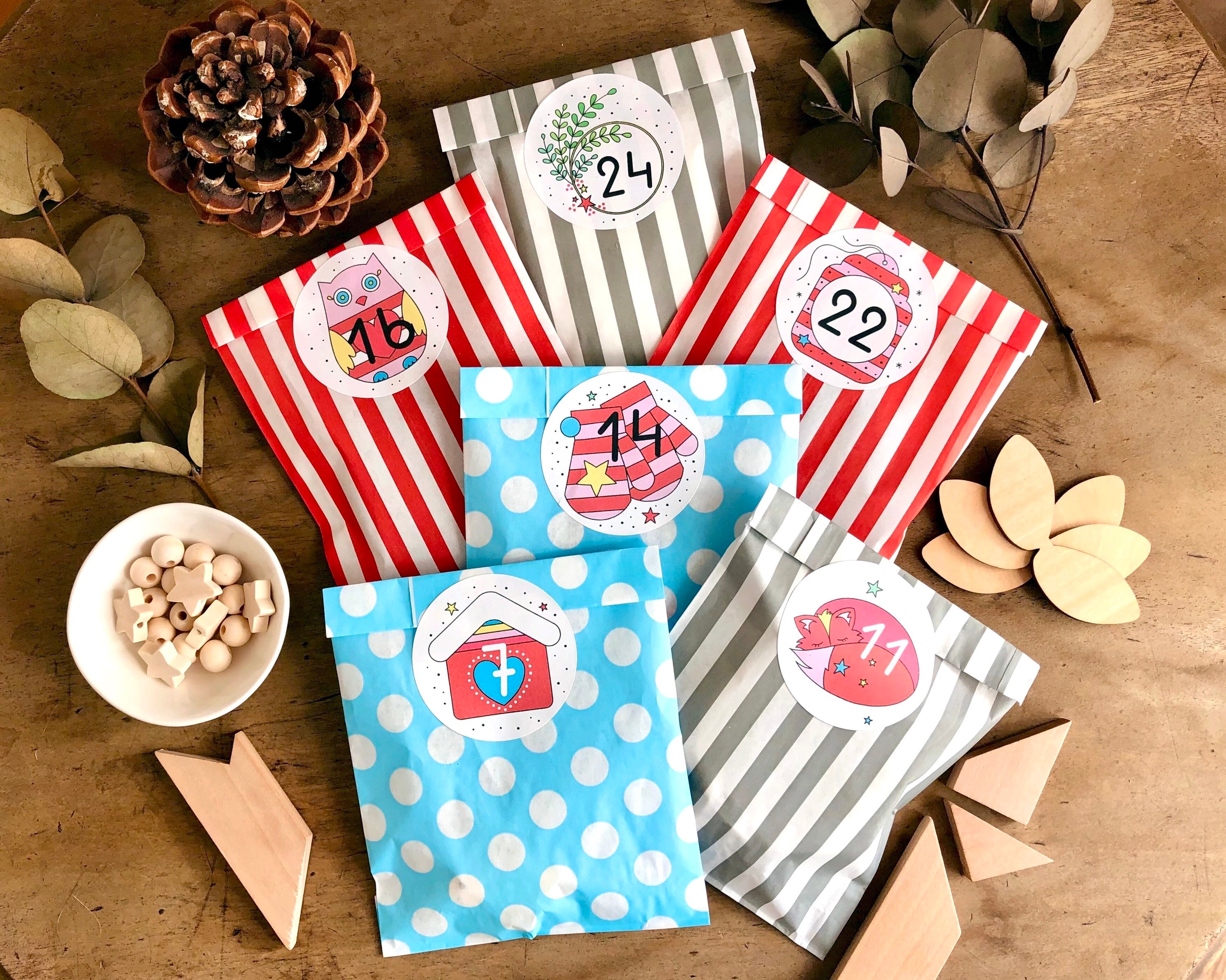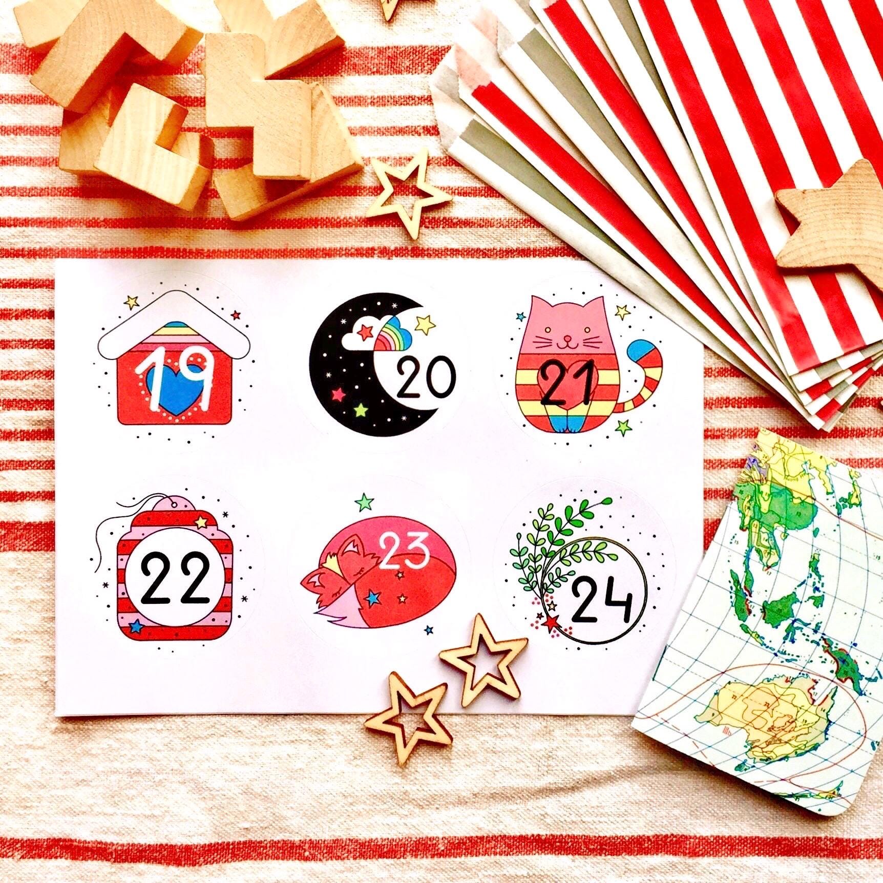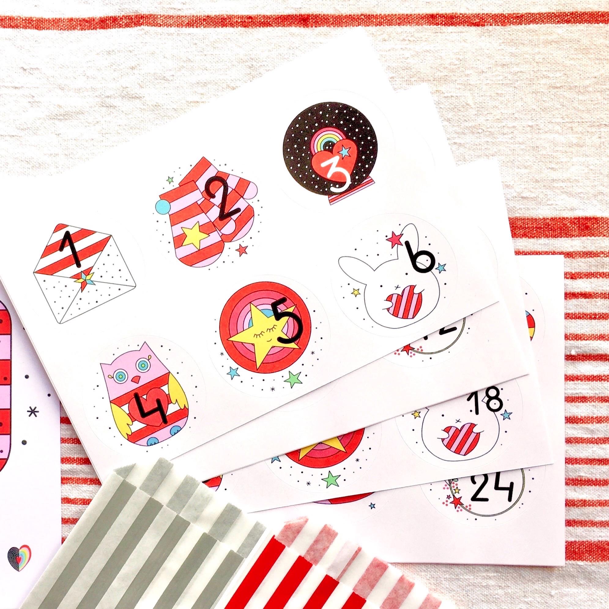 *** PLEASE NOTE: this set only includes 24 numbered stickers. It does NOT include paper bags or any packaging for advent gifts ***